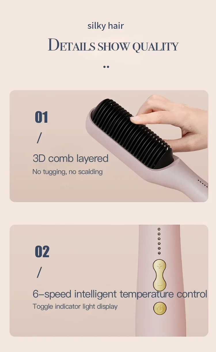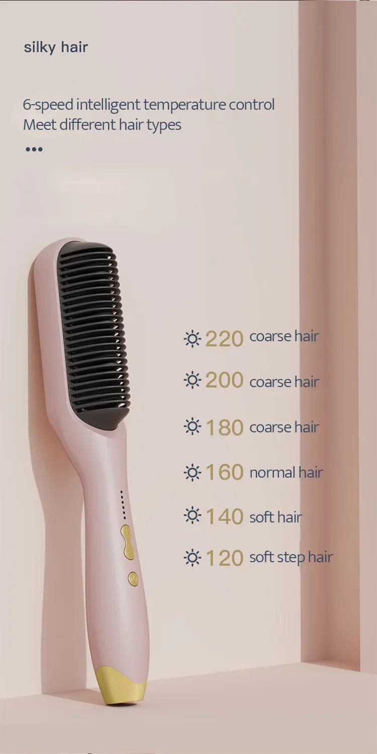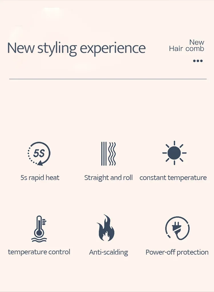 This straight hair comb adopts PTC ceramic heating, with anion hair protection, lock the moisture 1000 times, repair damaged hair, 10 seconds fast heat, plus anti-hot comb teeth, anti-hot hand, does not hurt the hair; Five temperature adjustment, about 130°-200°, suitable for different hair needs, straight curler can quickly create hair, suitable for any hair, natural curls can also be straight.