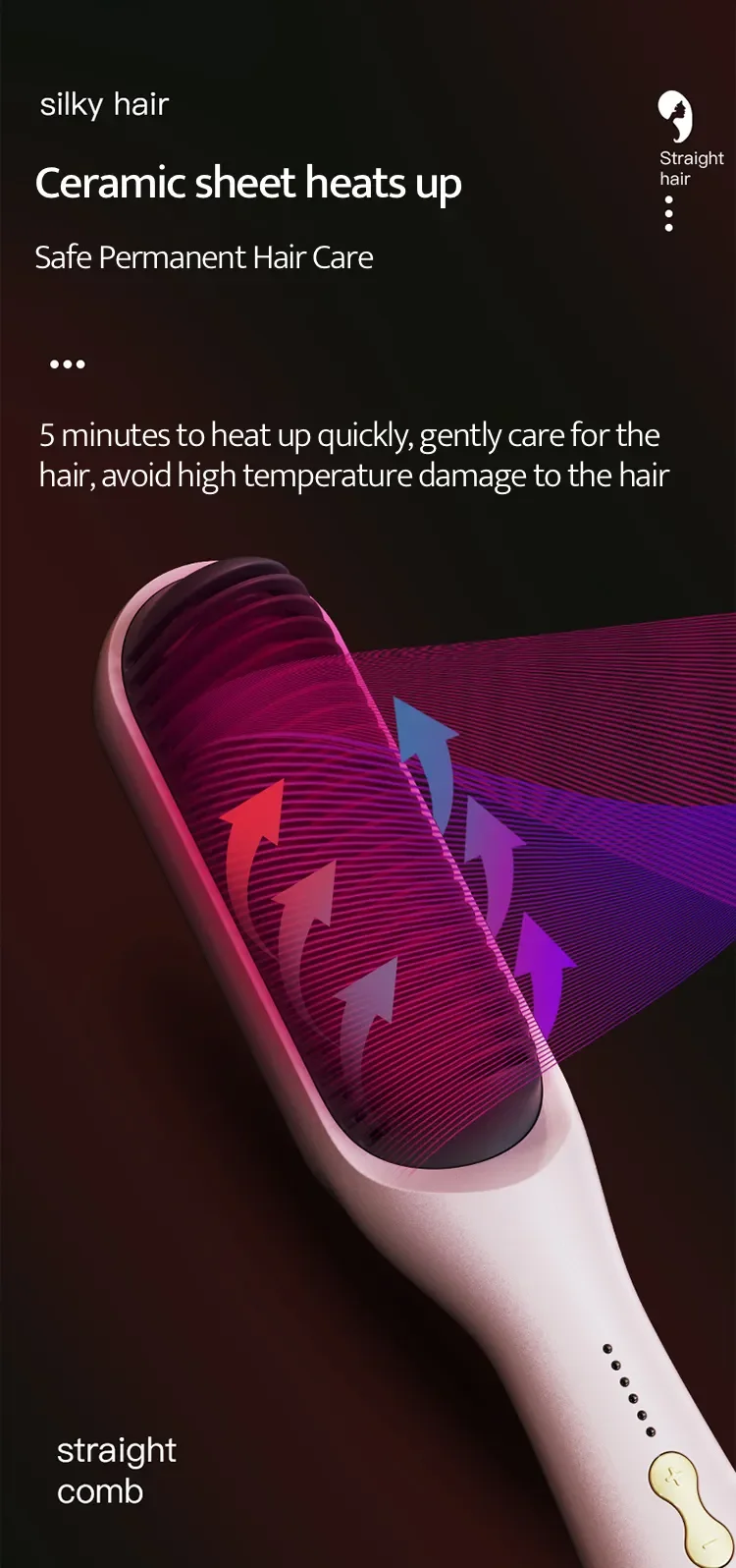 1.The anti-scald comb is designed to straighten the comb to reduce hair pulling and the insulation layer can prevent hand heat.